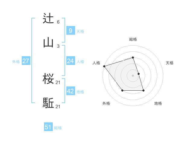 辻山 桜駈さんを姓名の画数から五運を鑑定