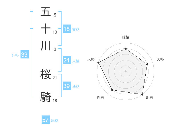 五十川 桜騎さんの総格は57画の4点!