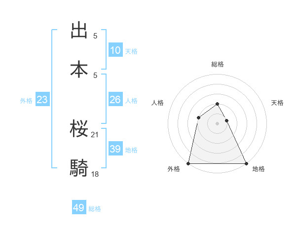 出本 桜騎さんを姓名の画数から五運を鑑定