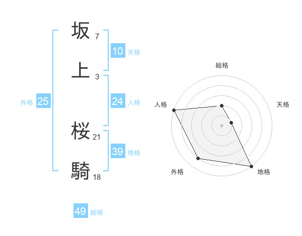 坂上 桜騎さんを姓名の画数から五運を鑑定