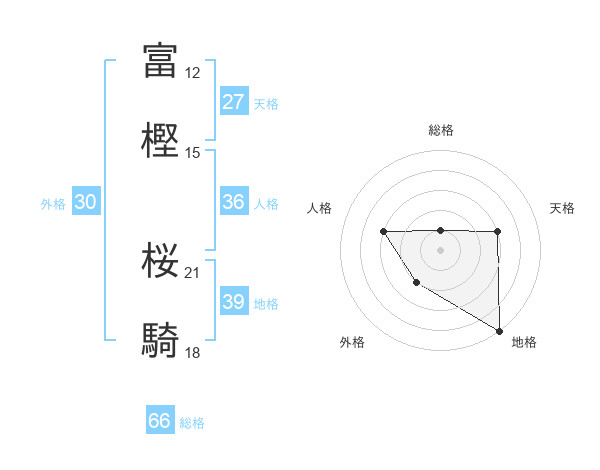 富樫 桜騎さんの総格は66画の1点!