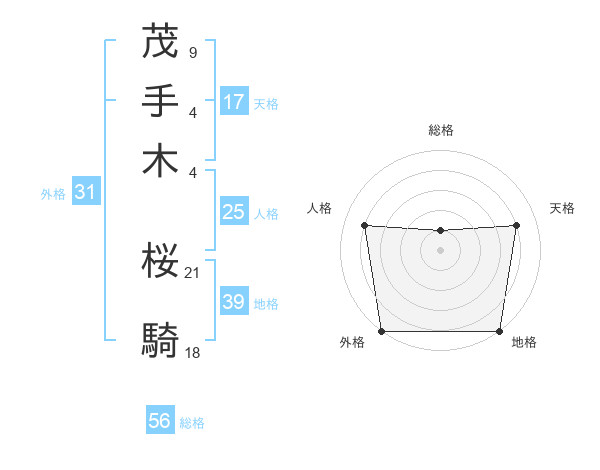茂手木 桜騎さんを姓名の画数から五運を鑑定