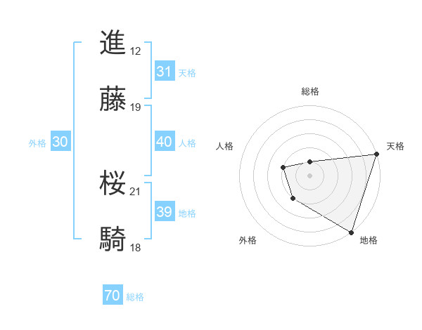 進藤 桜騎さんを姓名の画数から五運を鑑定