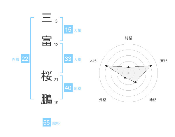 三富 桜鵬さんの総格は55画の1点!