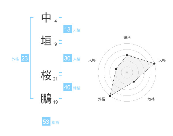 中垣 桜鵬さんを姓名の画数から五運を鑑定