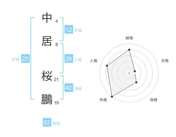 中居 桜鵬さんを姓名の画数から五運を鑑定