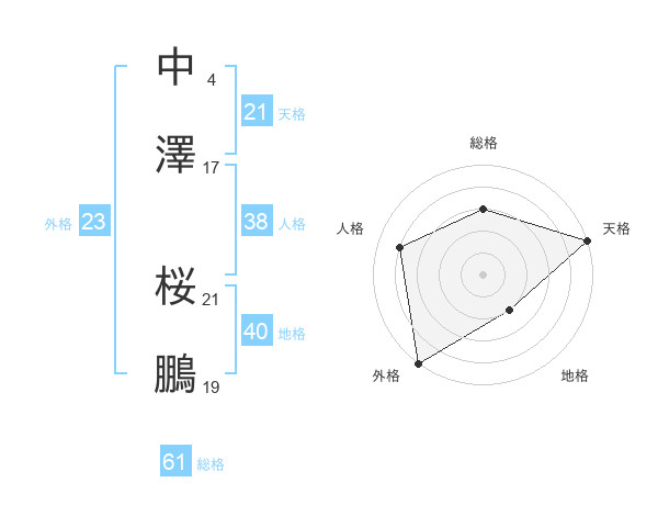 中澤 桜鵬さんの総格は61画の3点!
