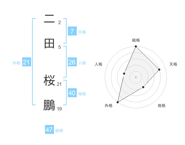 二田 桜鵬さんを姓名の画数から五運を鑑定