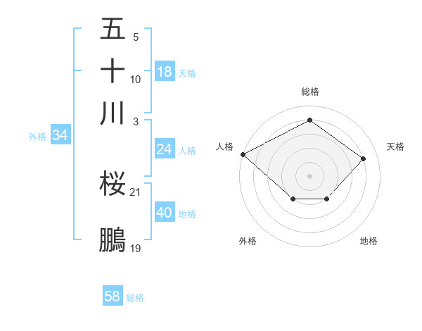 五十川 桜鵬さんを姓名の画数から五運を鑑定