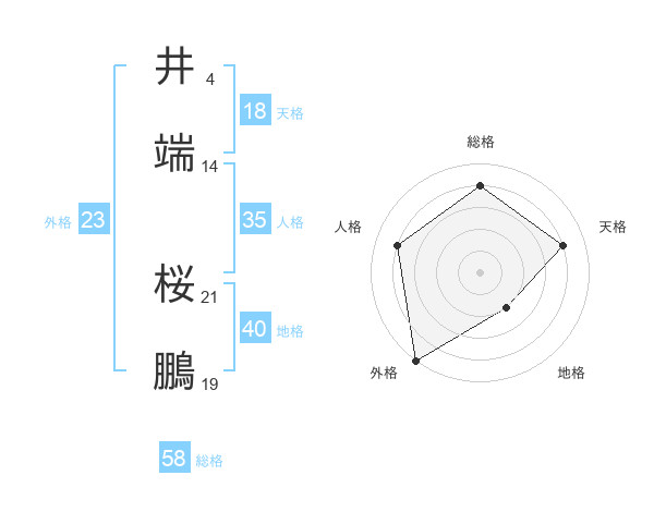 井端 桜鵬さんの総格は58画の4点!
