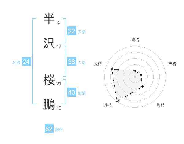 半沢 桜鵬さんを姓名の画数から五運を鑑定