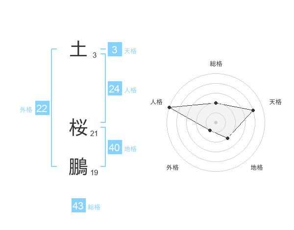土 桜鵬さんの総格は43画の2点!