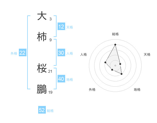 大柿 桜鵬さんの総格は52画の4点!