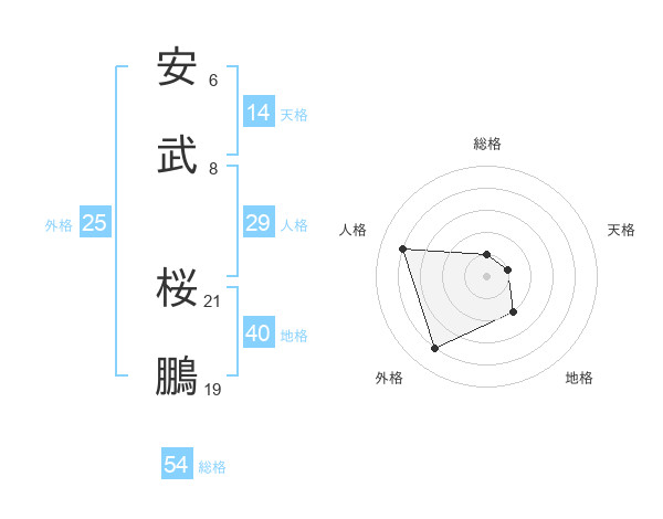 安武 桜鵬さんの総格は54画の1点!