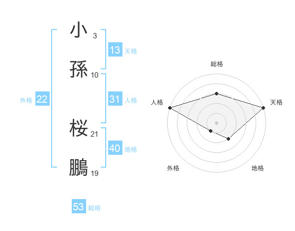 小孫 桜鵬さんの総格は53画の3点!