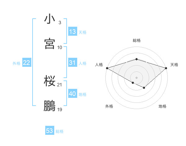 小宮 桜鵬さんを姓名の画数から五運を鑑定