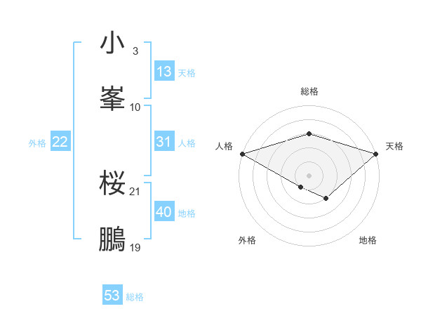 小峯 桜鵬さんの総格は53画の3点!
