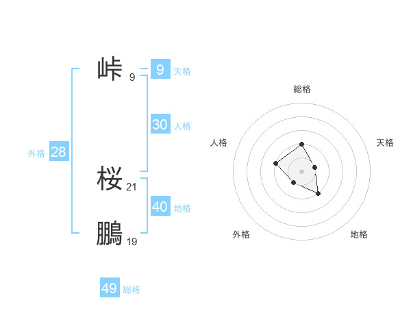 峠 桜鵬さんの総格は49画の2点!