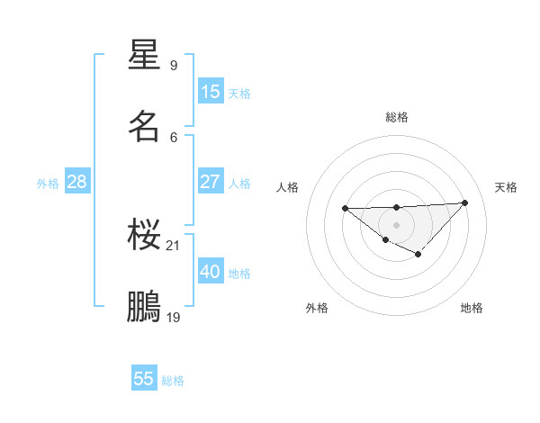 星名 桜鵬さんの総格は55画の1点!