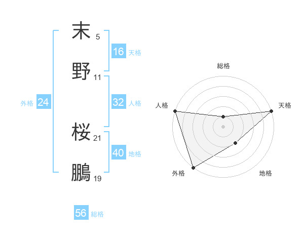 末野 桜鵬さんの総格は56画の1点!
