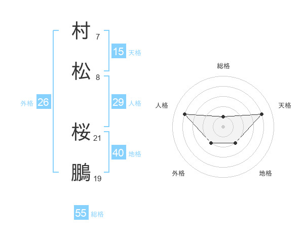 村松 桜鵬さんの総格は55画の1点!