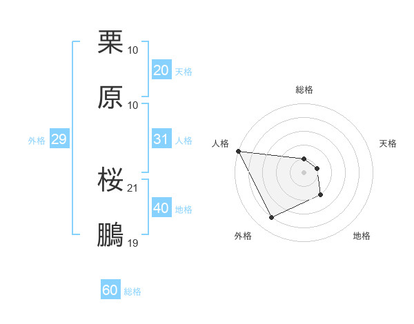 栗原 桜鵬さんを姓名の画数から五運を鑑定