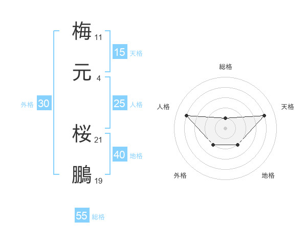 梅元 桜鵬さんの総格は55画の1点!