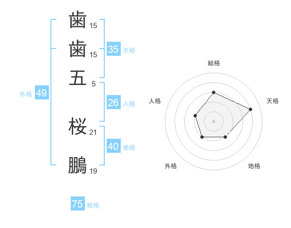 歯歯五 桜鵬さんの総格は75画の3点!