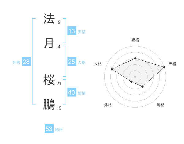 法月 桜鵬さんの総格は53画の3点!