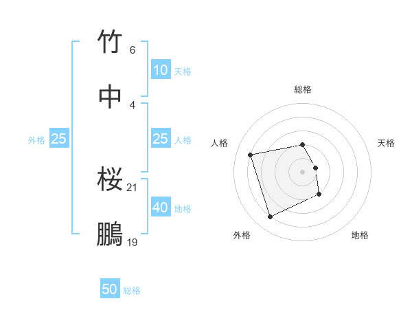 竹中 桜鵬さんを姓名の画数から五運を鑑定
