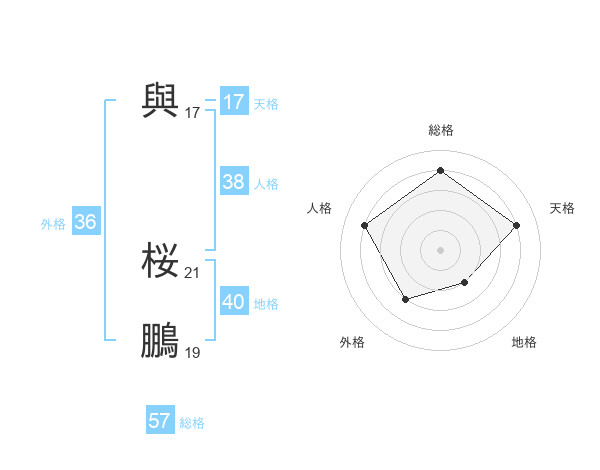 與 桜鵬さんの総格は57画の4点!