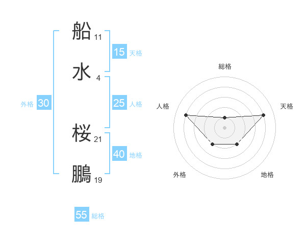 船水 桜鵬さんの総格は55画の1点!