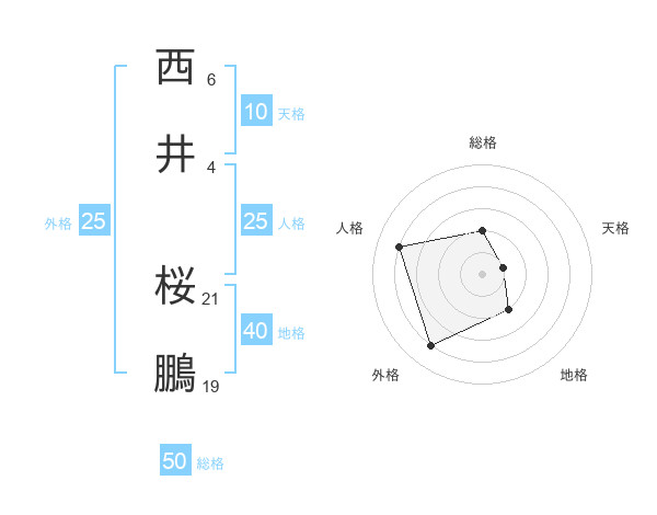 西井 桜鵬さんの総格は50画の2点!