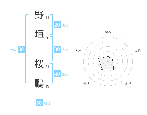 野垣 桜鵬さんの総格は60画の1点!