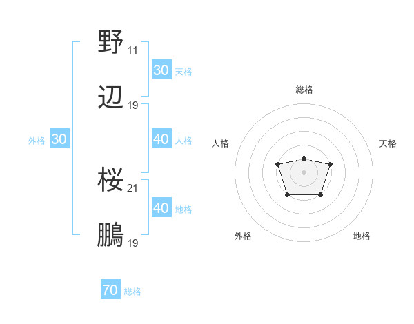 野辺 桜鵬さんの総格は70画の1点!