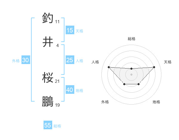釣井 桜鵬さんの総格は55画の1点!