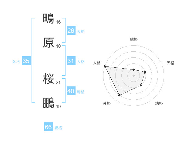 鴫原 桜鵬さんの総格は66画の1点!