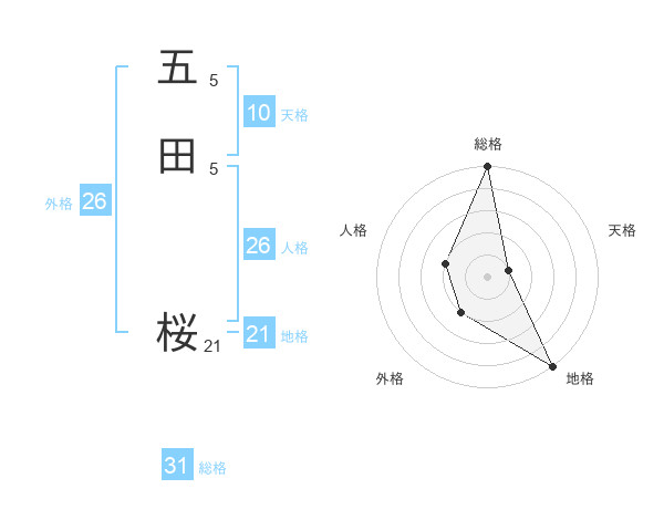 五田 桜さんの総格は31画の5点!
