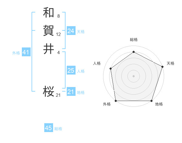 和賀井 桜さんを姓名の画数から五運を鑑定