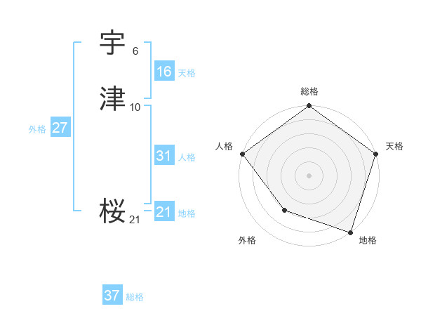 宇津 桜さんの総格は37画の5点!