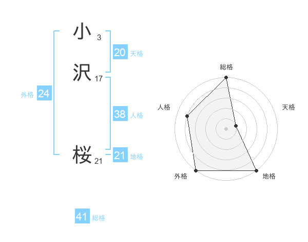 小沢 桜さんの総格は41画の5点!