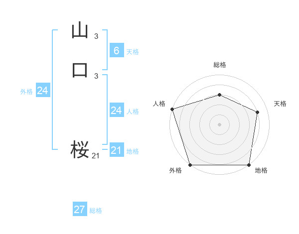 山口 桜さんの外格は24画の5点!