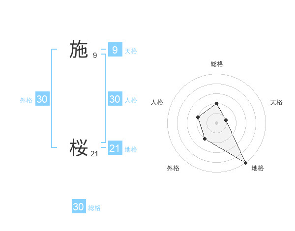 施 桜さんの総格は30画の2点!