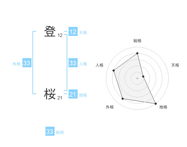 登 桜さんの外格は33画の4点!