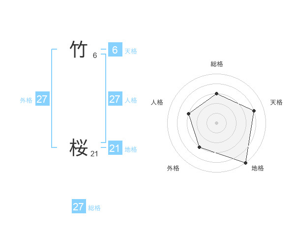 竹 桜さんの総格は27画の3点!
