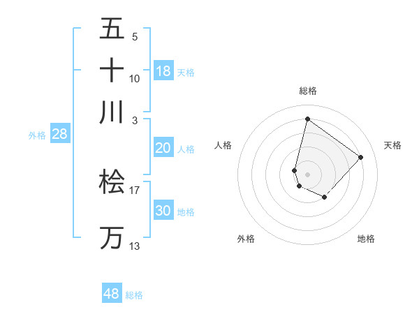 五十川 桧万さんを姓名の画数から五運を鑑定