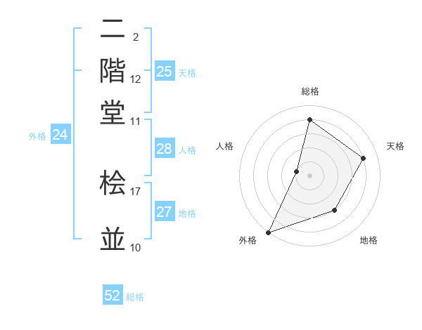 二階堂 桧並さんを姓名の画数から五運を鑑定