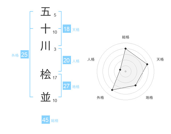 五十川 桧並さんを姓名の画数から五運を鑑定