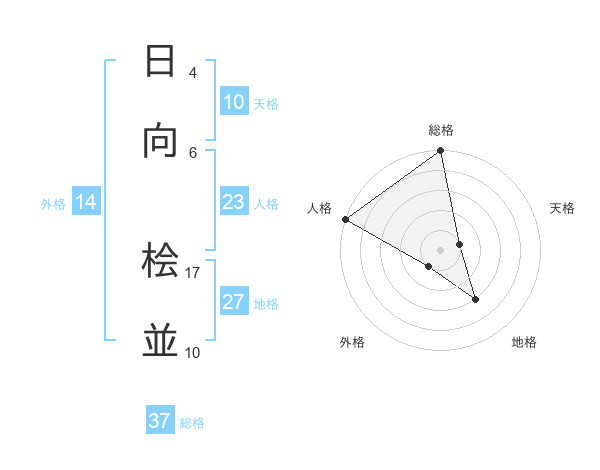日向 桧並さんの総格は37画の5点!