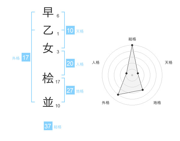 早乙女 桧並さんの総格は37画の5点!